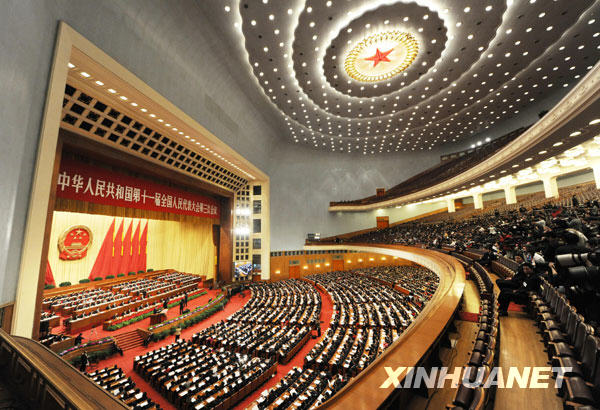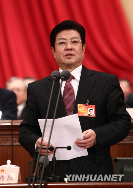 3月9日,十一屆全國人大三次會議在北京人民大會堂舉行第三次全體會議。王兆國主持會議。新華社記者劉衛兵攝