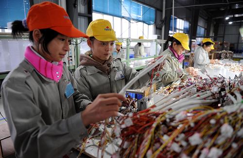 資料圖片:江西省上猶縣返鄉(xiāng)農(nóng)民工在該縣工業(yè)園區(qū)行田電產(chǎn)有限公司上班(11月18日攝)。2008年下半年以來,受國際金融危機影響,江西省就業(yè)形勢非常嚴峻。為此,江西省綜合運用各種政策保企業(yè)促就業(yè),多渠道搭建就業(yè)平臺,免費培訓(xùn)農(nóng)民工轉(zhuǎn)崗轉(zhuǎn)業(yè)和自主創(chuàng)業(yè),至今年10月底,江西省返鄉(xiāng)農(nóng)民工315萬中已有308.5萬在省內(nèi)外實現(xiàn)就業(yè)創(chuàng)業(yè)。新華社記者 周科 攝