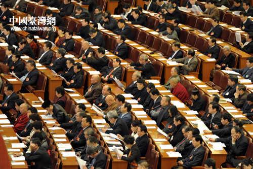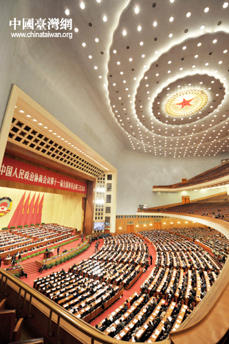 中國臺灣網3月10日消息 全國政協十一屆三次會議9日上午在人民大會堂舉行第三次全體會議。政協委員就保障職工收入分配權益、農村集體建設用地使用權流轉、推動職業教育科學發展等作大會發言。中共中央政治局常委、全國政協主席賈慶林出席會議。今天大會的執行主席是廖暉、阿不來提?阿不都熱西提、張梅穎、孫家正、李金華、鄭萬通、萬鋼、陳宗興。會議由孫家正主持。中共中央政治局委員、國務委員劉延東和中共中央、國務院有關部門負責人到會聽取發言。(肖春陽、劉洋攝影報道)