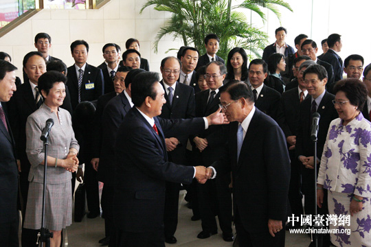第三次“陳江會談”昨天在南京結束,海協會今天舉行話別儀式,歡送海基會董事長江丙坤一行。(中國臺灣網 鐘寶華 攝)