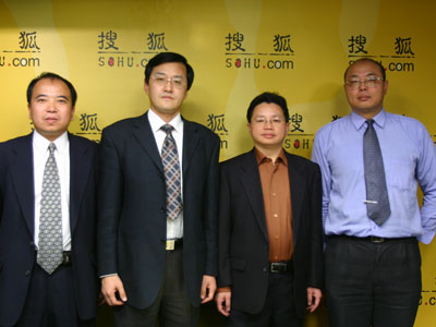 2005年10月24日,中國臺灣網(wǎng)與搜狐網(wǎng)合作,對《臺灣同胞抗日斗爭展覽》的三位撰稿人進行專訪。圖中從左到右分別為:中國社科院臺灣史研究中心褚靜濤先生,臺灣史研究專家、臺盟中央宣傳部副部長、臺海出版社社長安然先生,全國臺聯(lián)聯(lián)絡部部長、前全國臺聯(lián)研究室副主任、全國臺灣研究會理事楊毅周教授,中國臺灣網(wǎng)副總編輯吳彤先生