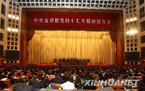 11月5日,中央宣講團黨的十七大精神報告會在北京人民大會堂舉行。 新華社 記者 高潔 攝