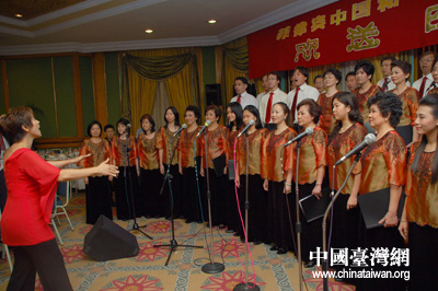 由菲律賓華人華僑組成的“黃河合唱團”,在晚宴上演唱了《世界上只有一個中國》、《把根留住》、《我的根啊,在中國》等歌曲
