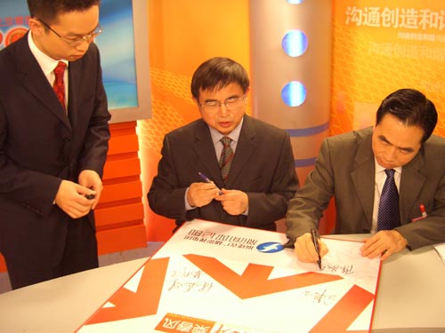 楊邦杰、陳家驊為《海峽西岸乘春風(fēng)》節(jié)目簽字留念。