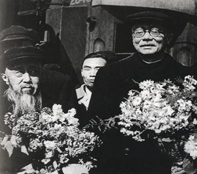 圖片說(shuō)明:1951年4月6日至5月29日,林伯渠、沈鈞儒分任中蘇友好協(xié)會(huì)赴蘇參加“五一”節(jié)觀禮代表團(tuán)正負(fù)副團(tuán)長(zhǎng),率團(tuán)對(duì)蘇聯(lián)進(jìn)行參觀訪問(wèn)。圖為代表團(tuán)在莫斯科車(chē)站受到熱烈歡迎。前排左為沈鈞儒,右為林伯渠。