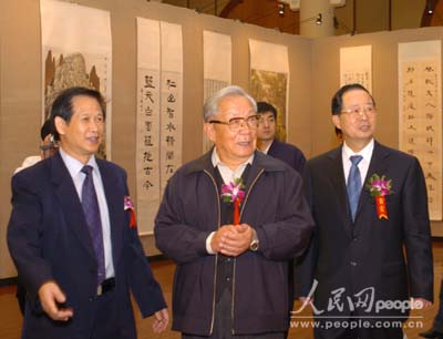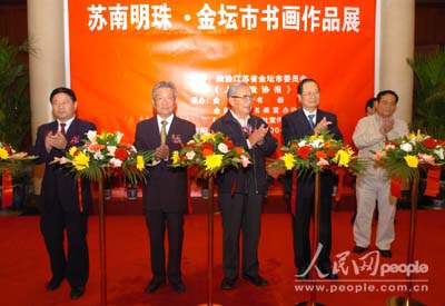 人民網北京9月26日訊 記者楊文全報道:由金壇市政協和人民政協報聯合舉辦的“蘇南明珠一一金壇市書畫作品展”9月26日在全國政協禮堂舉辦。全國政協副主席張懷西,原中央軍委副主席、國防部長遲浩田等為書畫展剪彩。原中共中央政治局常委、國務院副總理李嵐清和遲浩田為畫展題詞。