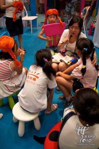 瑞典館講解員給中國小朋友們講述皮皮的故事