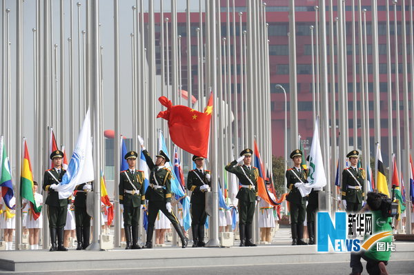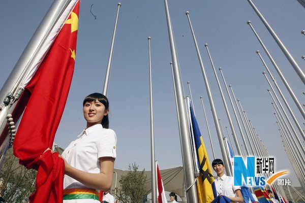 2010年4月30日上午8:30分,在上海世博園中國館附近的“旗林廣場”上舉行了“旗林”升旗儀式。中共上海市委常委、上海市副市長、上海世博會組委會委員、上海世博會執(zhí)委會常務(wù)副主任楊雄,國際展覽局秘書長洛塞泰斯和上海市政府副秘書長、上海世博局局長洪浩出席了儀式并致辭。