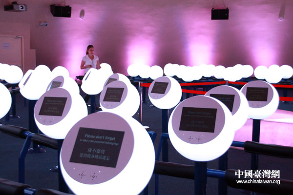 影片結束后,每個小的操作臺都有溫馨提示,物品不要遺忘。(中國臺灣網 鐘寶華 攝)
