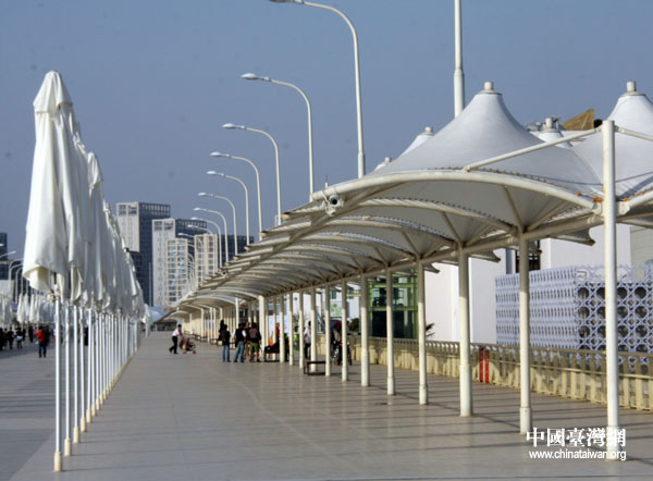 世博園區觀光步道上的遮陽棚,既實用又美觀。(中國臺灣網 鐘寶華 攝)