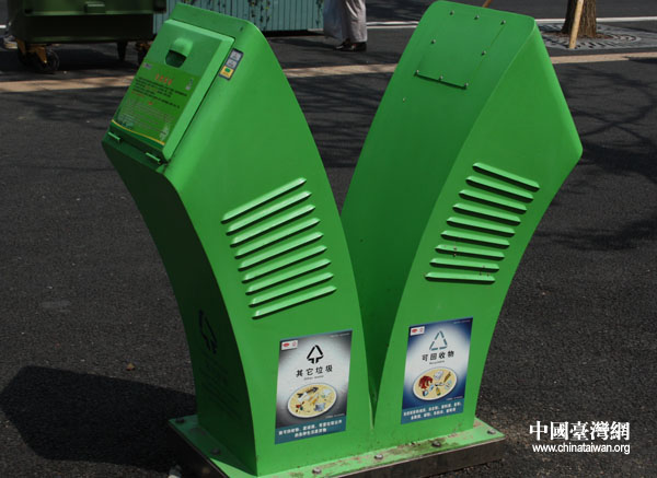可愛的垃圾桶,看起來很有型。(中國臺灣網 張弛 攝)