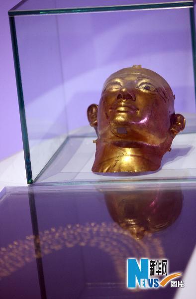 上海世博會埃及館展出的“法老舍松契二世面具”(5月15日攝)。