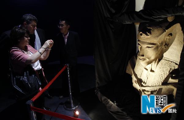 當日,上海世博會埃及館正式開館迎客,七件埃及國寶級文物與觀眾見面。 新華社記者裴鑫攝