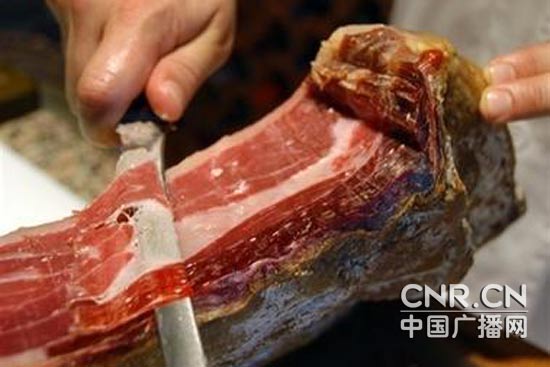 到過西班牙的朋友都知道,在西班牙的每家餐都不可少的一道美味,就是伊比利亞火腿。而在世博園,大家不用走出國門就能在西班牙館的餐廳里享用這種頂級美食實在是難得的幸運。