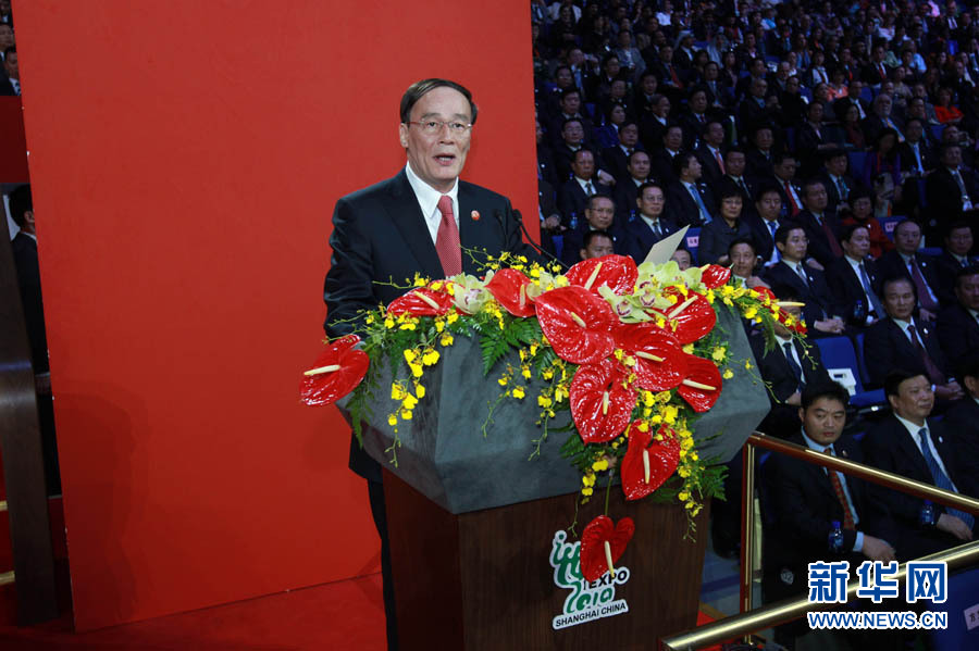 10月31日晚,中國2010年上海世博會(huì)閉幕式在世博文化中心舉行。這是中國國務(wù)院副總理、上海世博會(huì)組委會(huì)主任委員王岐山在閉幕式上致辭。新華社記者龐興雷攝