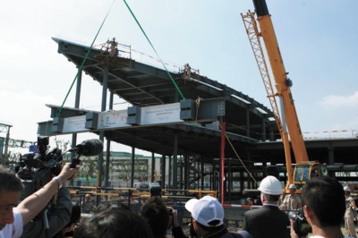 昨天,上海世博會美國館建設(shè)工程鋼結(jié)構(gòu)封頂