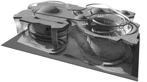 瑞士館的外圍是巨大的帷幕,參觀者可以從帷幕的任何一處進入館內一層的城市區(qū)。帷幕的每一部分都能獨立產(chǎn)生和儲存能量,并以LED燈的形式將其利用。帷幕可以與展館周圍的能量,如太陽能或者照相機閃光燈產(chǎn)生的光能發(fā)生反應,從而發(fā)出閃光。