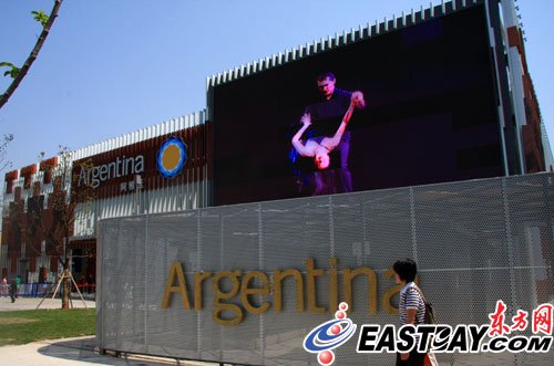 東方網世博前方報道組霍世杰5月3日獨家報道:大熒幕播放著足球比賽,擁有進口牛肉和高級紅酒的餐廳“虛位以待”,舞臺上國寶級跳著探戈,舞蹈間隔還會播放阿根廷原汁原味的電影,這就是阿根廷館。該館總代表莫列坦(martin)先生上午接受東方網記者的專訪時透露,著名籃球明星、姚明的隊友斯科拉將在6月3日來到阿根廷館教小朋友打籃球。