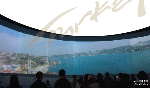 在土耳其館的現(xiàn)代展區(qū),設(shè)有一個(gè)360°環(huán)幕電影廳,震撼的視覺效果向人們?nèi)轿坏卣故玖艘了固共紶柕默F(xiàn)狀,是展館的主要展示區(qū)。