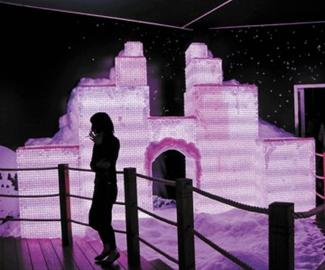 欣賞完4D影片之后,熱情的工作人員會帶領游客來到“冬景區域”。眼前白雪皚皚,似是來到了天山腳下。沿著木道行走,又會出現玲瓏剔透的冰晶景象。