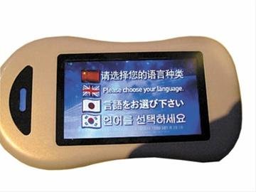 進入信息通信館后,每名參觀者都會領到一部ICT手持移動終端,在ICT終端上輸入自己的用戶名和密碼,就可以開啟一段屬于自己個人的參觀旅程。參觀時,ICT終端始終與參觀者、劇場大屏幕播放的影片進行互動。這一設備也被視為“未來手機”的雛形。