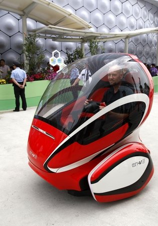 汽車館(網(wǎng)上汽車館)概念車EN-V“驕”行駛在世博園內(nèi)。 趙昀 早報(bào)資料
