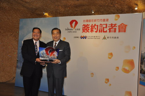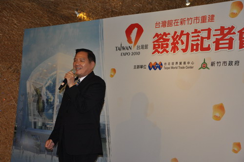 許明財市長表示,今天我們來迎娶“臺灣館”,我們已經做好了各方面的準備,我們還將全力以赴,一定會把“臺灣館”裝扮得更漂亮、更美麗,來迎接全球的觀光客,包括即將開始的臺灣觀光自由行的大陸客人。未來的“世博臺灣館”,我們把它放在新竹市的科技園區,從高鐵到新竹站只有30分鐘的路程,通過內外線的交流道只有10分鐘的時間,交通非常的方便。我們有信心,把世博臺灣館在新竹市能夠“發光發熱發亮”,讓全世界都能夠看到世博會臺灣館的美。