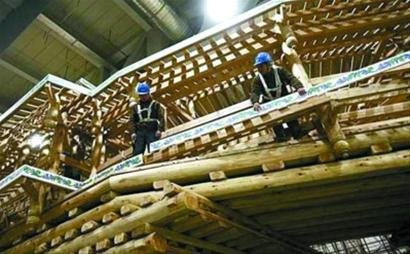 貴州館施工現(xiàn)場(chǎng),施工人員正在加緊建設(shè)