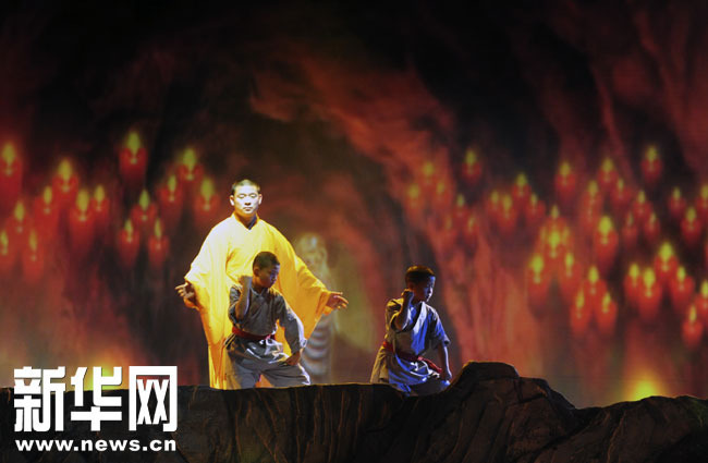 為此,少林寺特別策劃的《少林寺之武僧傳奇》,在園區(qū)內(nèi)廣場、綜藝大廳表演近千場。節(jié)目以原生態(tài)風(fēng)格,描寫小和尚禪武修行的成長生活,以此展示禪宗的基本世界觀,表現(xiàn)較為全面的少林功夫及基本禪修。