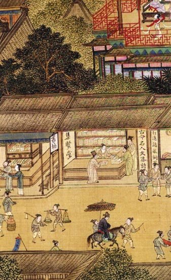 畫中大街小巷,店鋪林立,酒店、茶館、點心鋪等百肆雜陳,還有城樓、河港、橋梁、貨船、官府宅第和茅棚村舍密集。這樣波瀾壯闊的社會風俗畫卷,世所罕見。