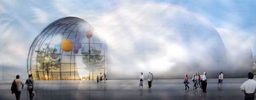 9月13日拍攝的上海世博會(huì)世界氣象館“云中水滴”效果圖