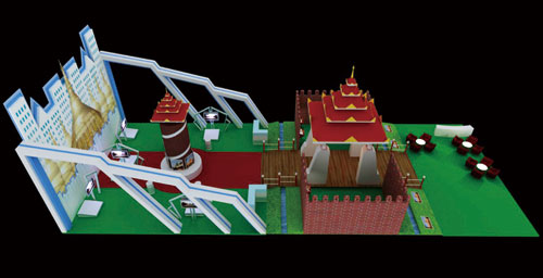 亭臺(tái)風(fēng)格的大門(mén)、氣勢(shì)宏偉的城墻以及門(mén)前的小橋流水使緬甸館呈現(xiàn)鮮明的東南亞風(fēng)情,展示了緬甸建筑藝術(shù)的魅力。館內(nèi)以神廟和傳統(tǒng)建筑為主要設(shè)計(jì)元素,利用先進(jìn)的展示手段介紹緬甸獨(dú)特的風(fēng)俗、先進(jìn)的教育、豐富的資源和燦爛的文化,講述緬甸的過(guò)去、現(xiàn)在與未來(lái)。