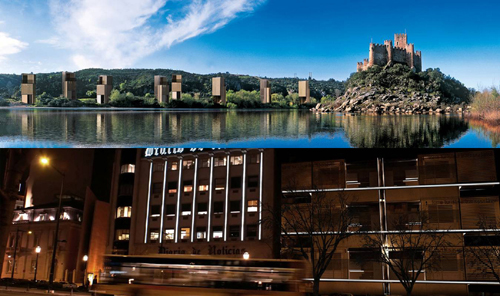 葡萄牙案例館提供的照片顯示:位于葡萄牙Almourol鄉村的“可搬運的游客塔”與城堡相應成景(上圖)。 夜色中的葡萄牙里斯本的“可搬運的游客塔”(右)(下圖)。