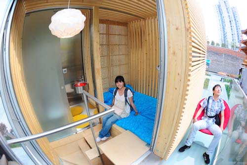 “造價還是有點高”,了解到小屋的整體造價需要大約80萬人民幣時,陳龍說,“盡管按單位面積來算,也算不上天價,但在我們的城市里,并不容易找到隨時可以安放的地方”。設計方帶來的這個案例展示,是想給需要這種房子的人一個購買的機會,也是提供一個房屋居住的解決方案,特別是在房價很高的城市里,這樣的設計符合世博會的主題,城市讓生活更美好,關鍵是要為不同的需求提供相應的解決方案。通過親身體驗,陳龍和杭星的共同感覺是,這樣的現代化“蝸居”解決方案相當有意義,目前雖然還只是在實驗階段,但未來的前景應該是很廣闊的,關鍵在于要把成本再降低,再解決安放地點許可的問題。 “能住在這樣的房子里,還是挺誘人的,特別是對買不起住房的年輕人來說,也多了一種選擇”。