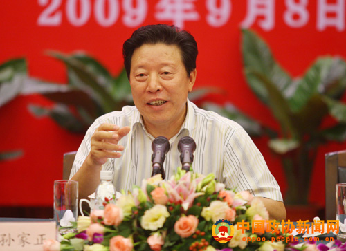 2009年9月8日,孫家正在上海市政協誦讀即興創作的詩歌《我去看世界》。(上海市政協提供)