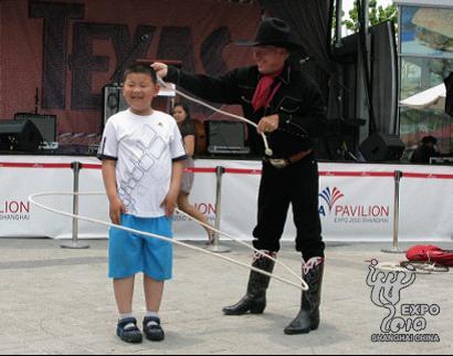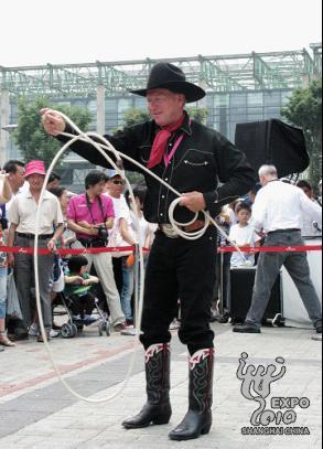 活動周開幕式現場,來自德州的全美牛仔冠軍與當地樂團獻上了別具一格的精彩表演。熱情的牛仔盛邀現場觀眾與其一同表演了一場難得一見的牛仔技巧秀,嫻熟的技藝配合現場富有動感的美國鄉村爵士樂,令眾多現場觀眾大呼過癮,掌聲與喝彩聲此起彼伏。正在美國館門口排隊等候入館的人群中更是不時響起叫好聲,游客還未入館便提前感受了來自美國德州的熱情。(李斌楊 趙莎莎)