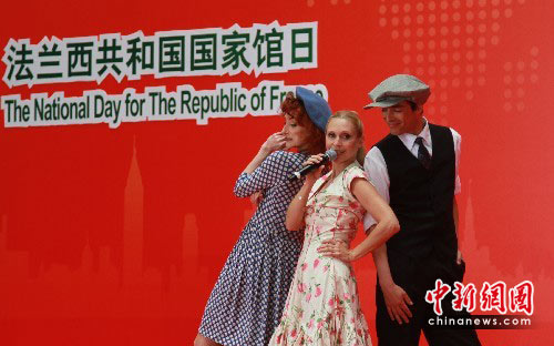 6月21日,上海世博會法國國家館日慶典活動在園內舉行,法國藝術家表演特色歌舞,盡顯浪漫風情。中新社發 殷春永 攝 中新社發 攝