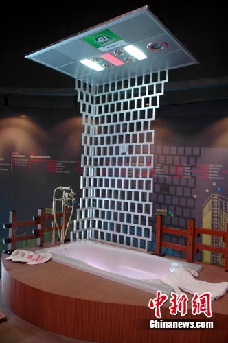 中國(guó)衛(wèi)浴品牌與洋品牌鏖戰(zhàn)世博園。圖為中國(guó)衛(wèi)浴企業(yè)推出的“全球最夢(mèng)幻衛(wèi)浴空間”。楊然 攝
