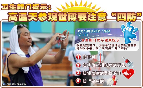 圖表:衛(wèi)生部門(mén)提示:高溫天參觀世博要注意“四防” 新華社發(fā)