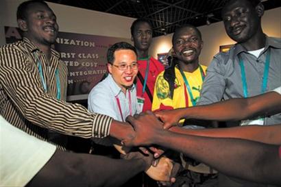 身材瘦小的陳錦田,走起路來風風火火,說起話來激情洋溢,舉手投足總是那么利落和自信。這位小個子男人,管理著世博園占地面積最大的場館非洲聯合館,有三個半足球場之大,館內有42個國家館和一個非盟,場館面積和參展國數量都創下歷屆世博會之最。
