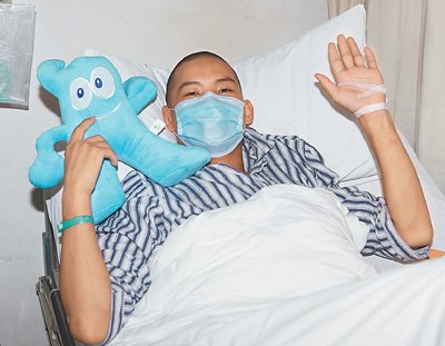 8月10日,身患“急性非淋巴細胞性白血病”的李雨明,在瑞金醫院病房經歷了第七天化療。躺在病床上的他對記者說:“為世博執勤光榮!希望病好了,還能為世博再站崗!”