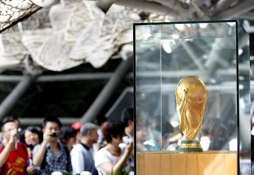 8月30日,“大力神杯”亮相西班牙館。新華社記者 藺以光 攝