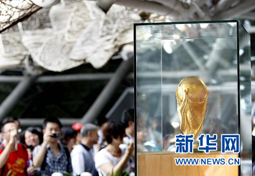 8月30日,“大力神杯”亮相西班牙館。新華社記者劉穎攝