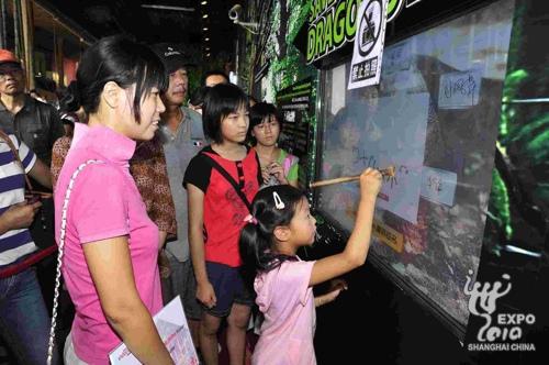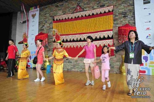 今天與葉珍母女一起來印尼館的還有王凱、王燁夫婦,他們與葉珍同在一家保險公司工作,葉珍母女把獲得的兩張機票中的一張送給他們,讓他們也享受到了印尼館帶來的幸運。(世博網)
