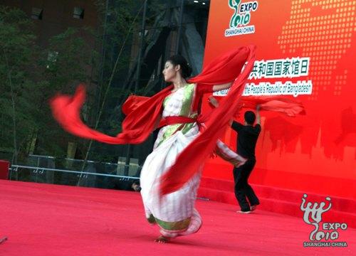 孟加拉館位于上海世博園A片區的亞洲聯合館,展館主題是“金色孟加拉的精神和成長”,入口處設計了色彩斑斕的孟加拉傳統圖案,館內建筑設計極具孟加拉特色,一座小型雕塑、一組孟加拉國新城區的圖片與傳統建筑模型互相映襯,象征著孟加拉國傳統與未來的對話。民俗風情墻上裝飾有孟加拉民族特色圖片,館內的餐飲區提供地道的孟加拉國美食。