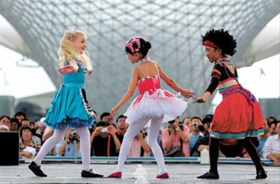 小演員在世博會上;顒又芪乃囇莩錾媳硌荨盾岳蚧ā。(邵劍平 攝)