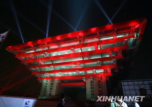 6月22日晚,2010年上海世博會中國館35千伏變電站正式投運,有“東方之冠”之譽的中國館在夜幕下初綻美麗的光芒。中國館正式通電標志著世博園區各項供電工程全面進入沖刺階段。新華社記者 任瓏 攝(資料圖片)