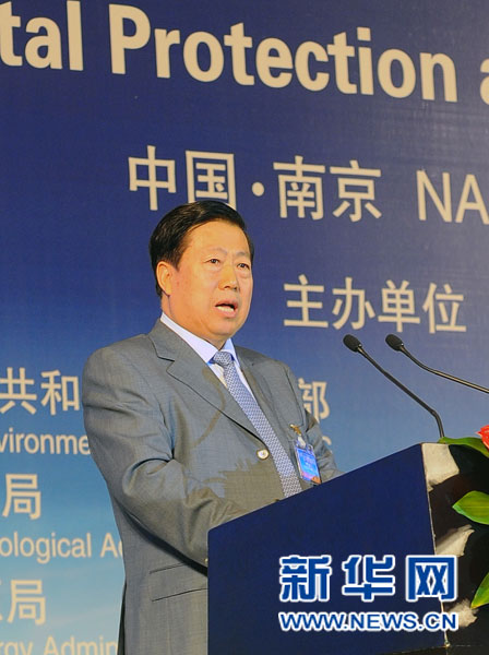 7月3日,由環境保護部、國家氣象局、國家能源局、聯合國環境規劃署和中國2010年上海世博會執行委員會共同主辦的上海世博會第四場主題論壇——“環境變化與城市責任”在南京開幕。圖為環境保護部部長周生賢在論壇上演講。 新華社記者 陳琪攝