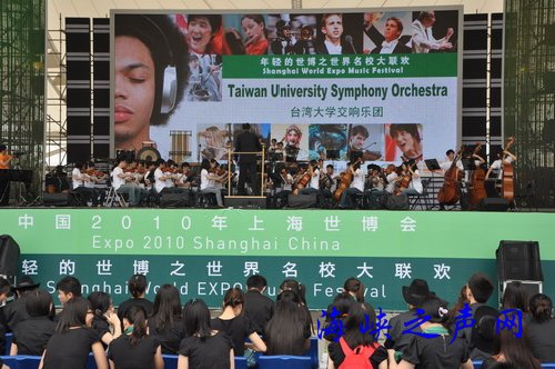 記者了解到,臺(tái)灣大學(xué)交響樂(lè)團(tuán)這次參加世博會(huì)廣場(chǎng)演出交響樂(lè),是整個(gè)世博會(huì)青年活動(dòng)周暨世界名校大聯(lián)歡活動(dòng)的第一場(chǎng)表演,因此格外受到關(guān)注。按照計(jì)劃,他們將連續(xù)表演三場(chǎng)。