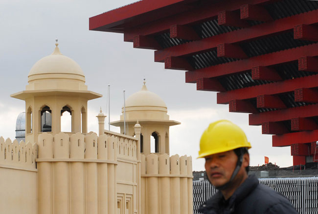 新華網(wǎng)上海12月15日電 12月14日拍攝的上海世博會巴基斯坦館。日前,2010年上海世界博覽會巴基斯坦館封頂亮相,預計今年底完工。巴基斯坦館位于上海世博園區(qū)浦東A片區(qū),緊鄰中國館,展館造型是等比例復制巴基斯坦著名的拉合爾古堡。 新華社簽約攝影師 鈕一新 攝